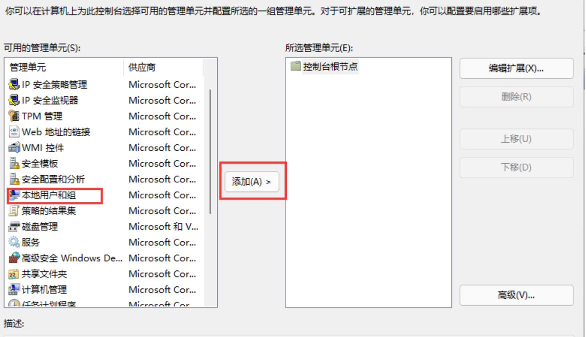 3、接着打开“本地用户和组”,点击“添加”—“完成”按钮,最后点击“确定”保存;