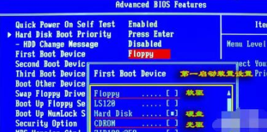 2、在未开机前我们狂按del键,不同的主板进入bios的方式有所不同,请大家参看主板说明进入bios,进入之后,将第一启动方式改为光盘启动即可,如图所示。