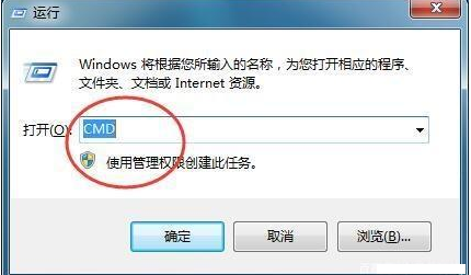1.以win7系统为例说明,讲u盘插入电脑,打开win7系统的运行功能,输入cmd点击确定,进入下一步。