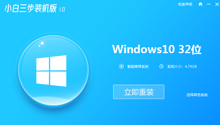 1.安装前退出安全软件,然后在小白系统官网下载小白三步安装软件并打开。默认情况下,建议安装Windows10,点击立即重新安装。