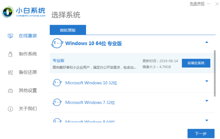1.我们在惠普电脑中下载小白一键重装软件,完成后打开软件后选择我们要安装的系统。