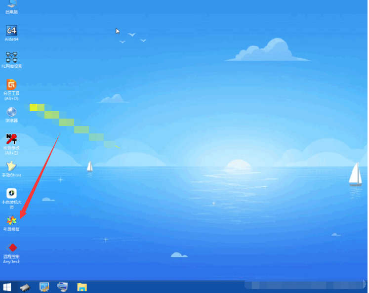 1、安装完后重新启动出现NO Boot Device Found,可以借助小白u盘启动盘,启动进入PE系统内,鼠标双击打开引导修复工具即可对系统进行一键修复引导,如图。
