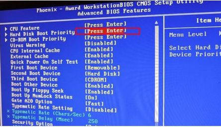 4、接着按↓方向键选择“Hard Disk Boot Priority”回车。
