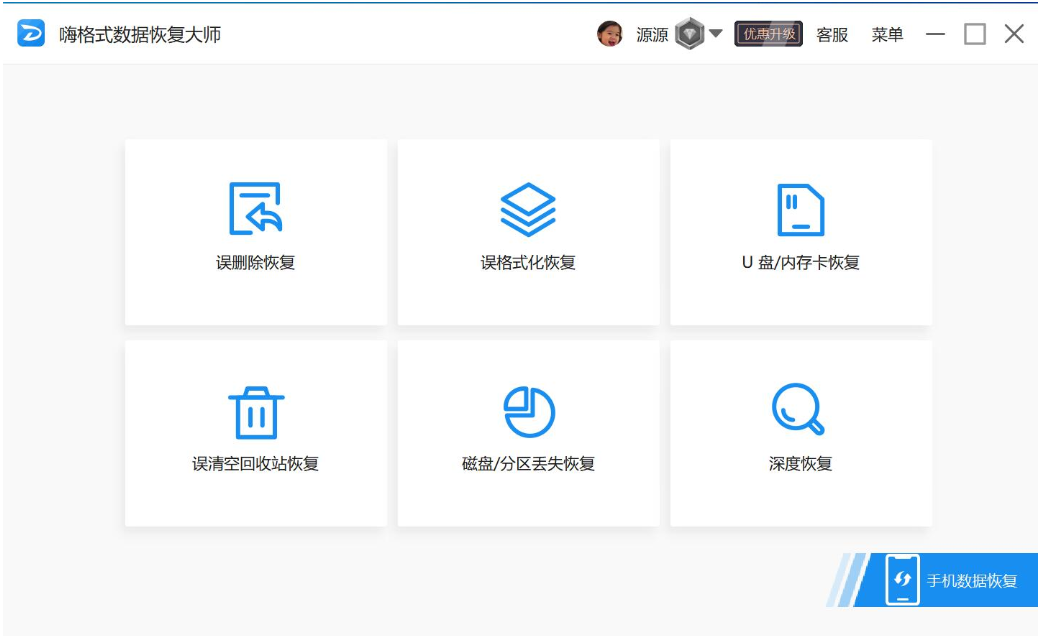 运行嗨格式数据恢复大师,点击软件中需要的恢复模式。
