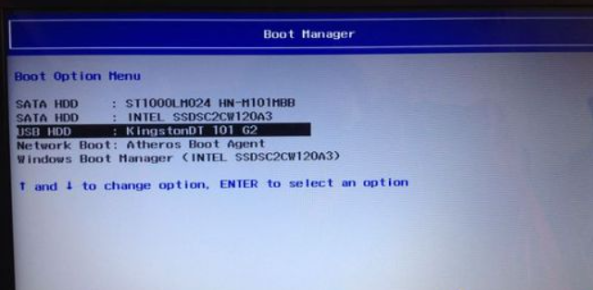 2、插入u盘启动盘,重启后不停按F12启动快捷键,选择识别到的U盘选项,选择之后按回车。