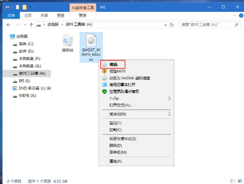 7、打开此电脑—微PE工具箱,右键点击win10系统iso镜像,选择【装载】。