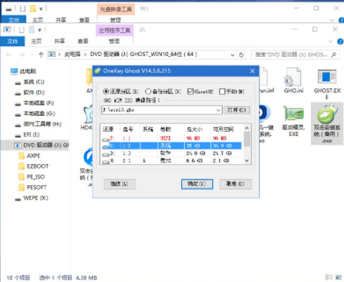 8、双击【双击安装系统.exe】,选择【还原分区】,选择安装位置,一般是C盘,选择之后,点击确定即可。