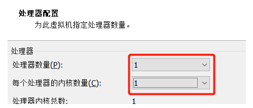 6.选择处理器的核数,CPU数量与核数不能超过当前物理机上的CPU数量与核数。