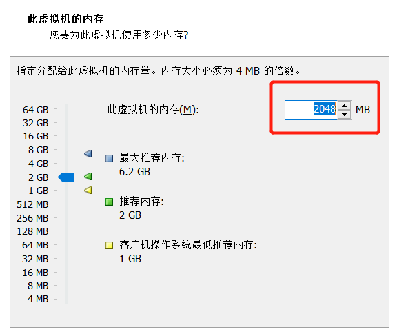 7.虚拟机内存的选择,建议不要超过当前物理机内存的一半,因为物理机同时也要运行文件,虚拟机使用的太多,电脑容易出现卡顿。