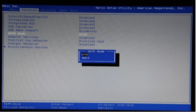 2、用方向键移动到“Advanced-SATA Mode”,按下Enter回车键,再用方向键选择ATA模式,ATA模式是防止在安装过程中出现蓝屏。