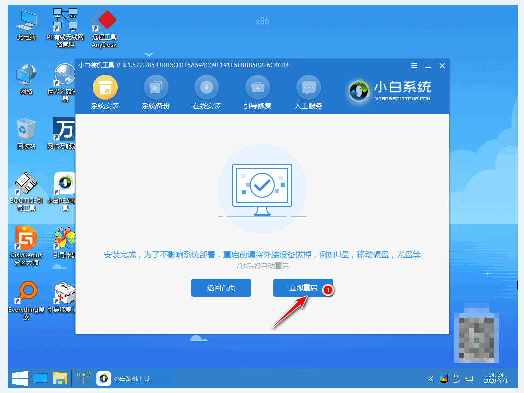 6.系统安装完成后,点击”立即重启“按钮。