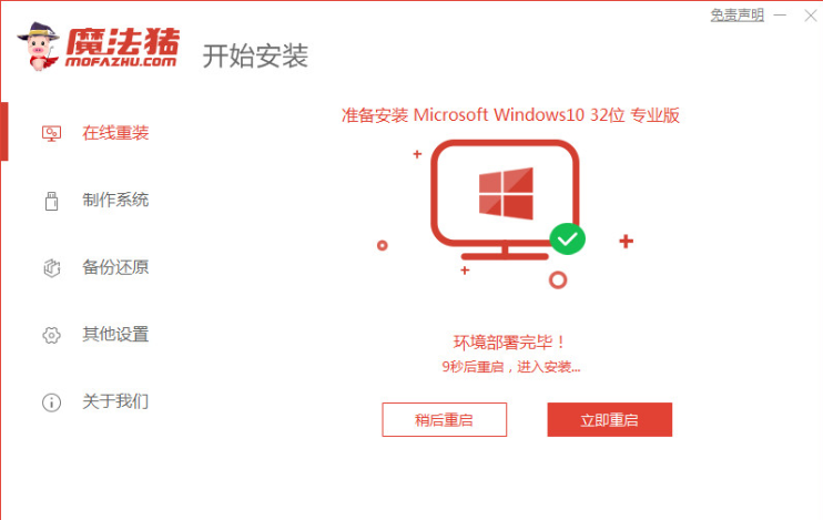 4、等待系统安装部署环境完毕之后,点击立即重启电脑。