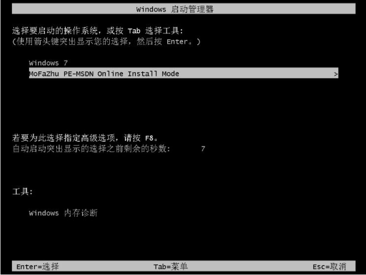 5、进入启动管理器界面,选择第二项回车。