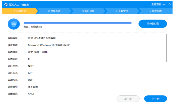 3、等待环境监测完毕,点击“下一步”