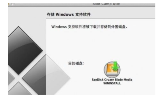 3、插入自备的windows系统U盘,在Apple中下载最新的Windows支持软件,点击继续,耐心等待系统自动下载Windows驱动到U盘中。