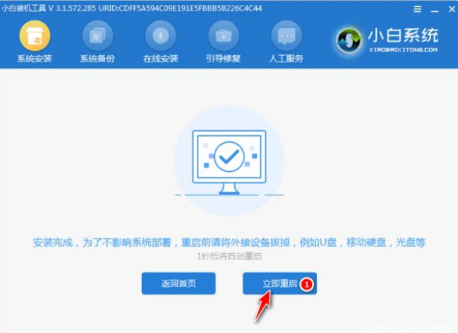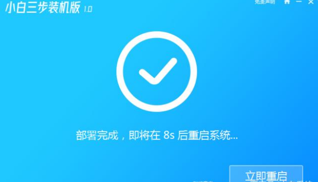 2.等待下载小白三步机软件,安装好系统文件后,我们点击即可重启。