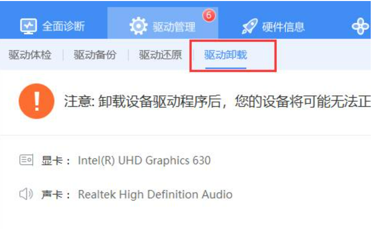 3、然后点击下方“驱动卸载”。