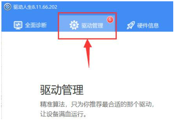 2、下载安装完成,打开软件,点击上方的“驱动管理”选项。