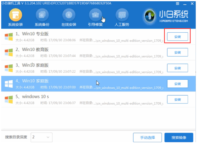 步骤六:点击安装下载的win10专业版系统,(推荐选择专业版)。参考下图: