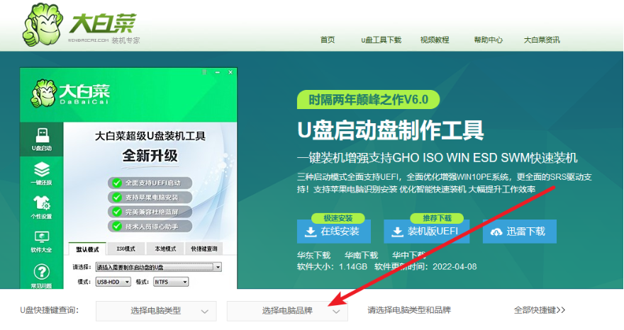 1、准备8G的U盘,下载大白菜U盘启动盘制作工具最新版,打开并点击一键制作,制作过程中会格式化U盘,注意备份资料。