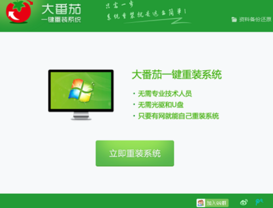 对于不会重装系统的电脑小白来说,大番茄一键重装系统就是他们的福音了。使用大番茄一键重装系统,不需要太多的电脑知识,就能重装系统,下面我们来看看大番茄一键重装系统步骤图解。