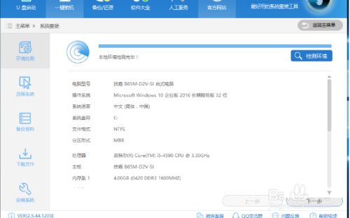 2、小白一键重装系统软件会自动检测您的电脑软硬件配置是否符合重装系统的要求,检测完毕后点击下一步继续。