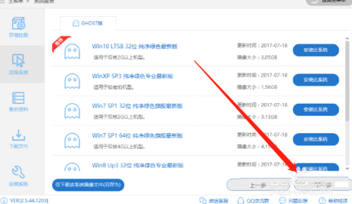 3、在系统选择界面中找到windows10系统后面的安装此系统按钮,点击进入下一步。