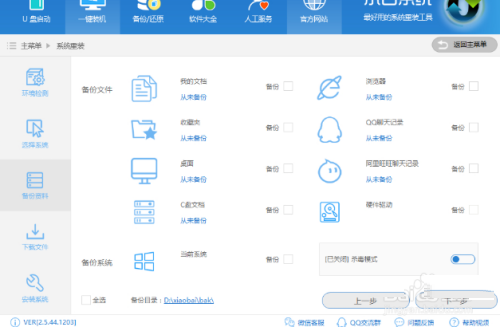 4、在备份资料界面中,讲需要备份的资料勾选,如果没有可以不勾选,点击下一步继续。