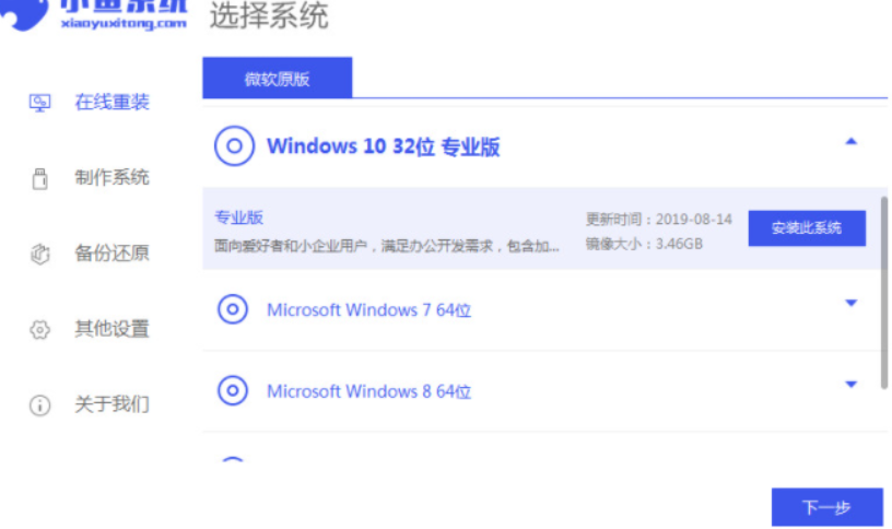 2.预选系统软件进行下载,勾选完成点击【下一步】。