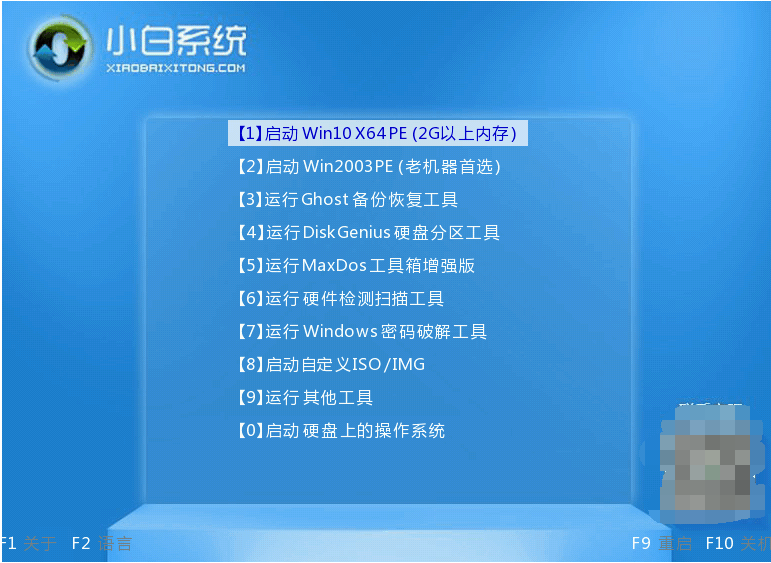 4、来到pe系统盘选择界面,我们点击第一项pe系统进入。