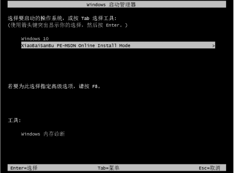 4、重启电脑进入启动项选择页面,选择小白PE系统进入。
