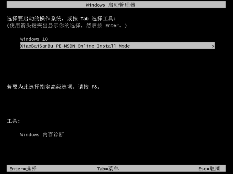 3、等来到启动项选择页面,选择小白PE系统进入。
