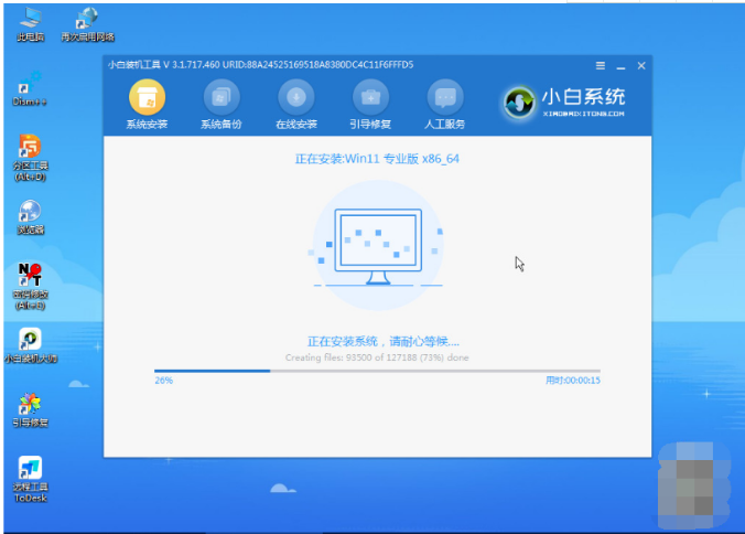 5、这时小白装机工具会自动打开并安装win111系统。