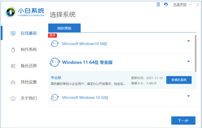 1、小白一键重装系统工具打开后选中win11系统安装;