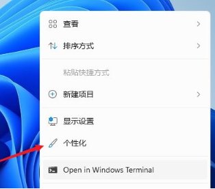 1.首先鼠标右键点击windows11桌面任意空白处,然后选择个性化。