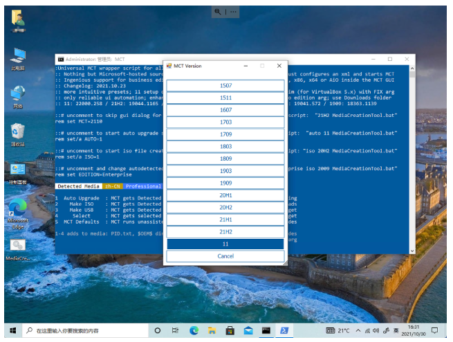 2、随后在弹出的 MCT 版本选择器中点击“11”来选择 Windows 11 的媒体创建工具。