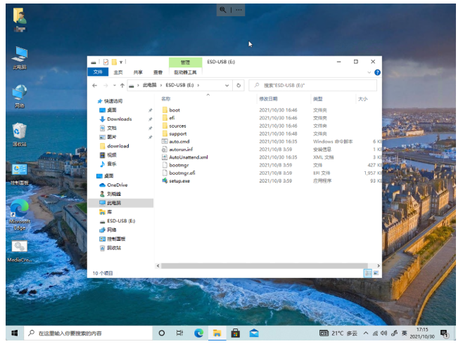 5、创建完成后,打开安装 U 盘,你就会发现里面多出来 auto.cmd 这个执行脚本,而这个脚本将会在安装过程中帮助你跳过硬件检测。而如果你想要升级到 Windows 11,则可以直接使用管理员权限来这个脚本,后面的升级完全自动化,之后你就可以将这个不符合 Windows 11 硬件要求的 Windows 10电脑,保留数据升级到 Windows 11 了。