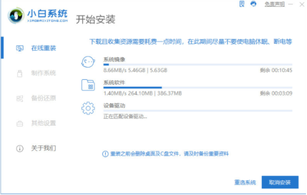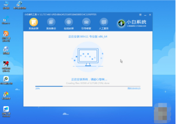 5、小白装机工具此时将会自动打开并安装win111系统。