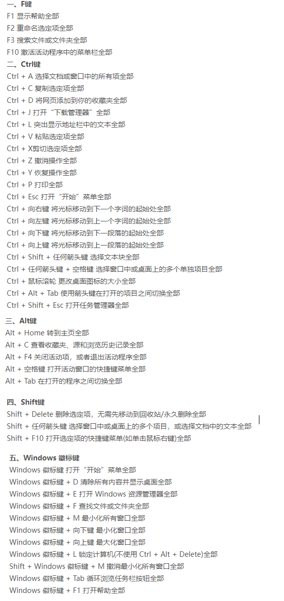 拓展知识:常用的win11快捷键汇总表